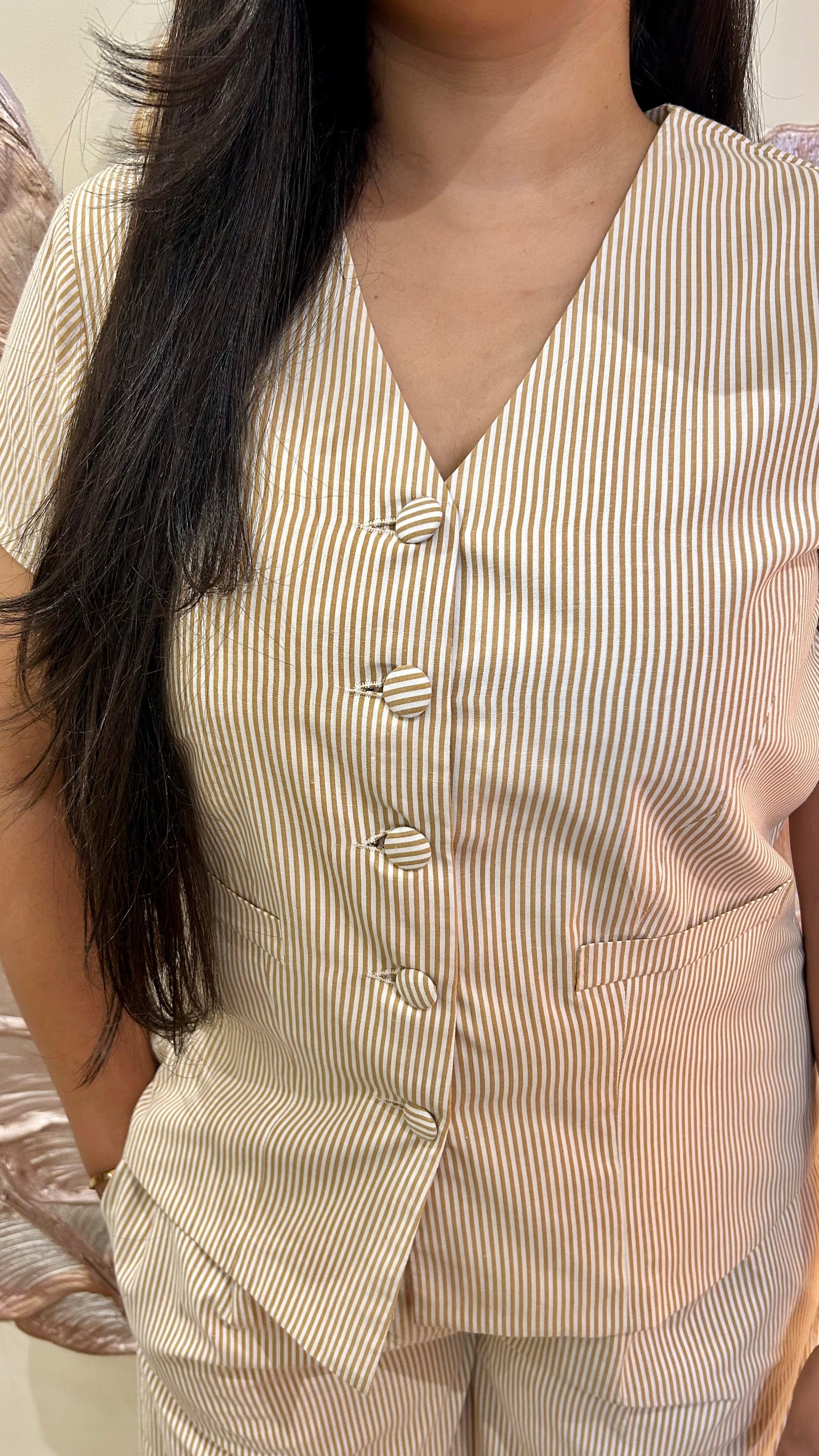 Elevate your professional and smart-casual wardrobe with our Pinstripe Power Co-ord Set. This ensemble masterfully blends the structure of tailored workwear with contemporary comfort, creating a polished look that requires minimal effort. It's the perfect choice for the modern woman on the go, transitioning seamlessly from the boardroom to a dinner date.